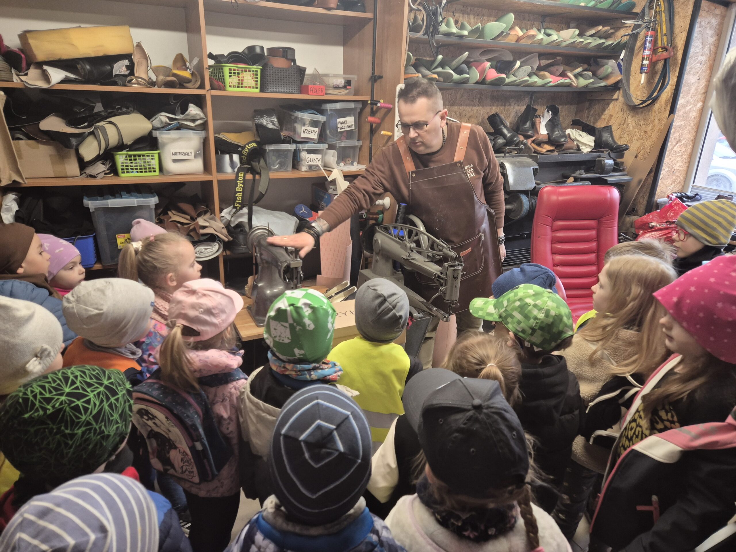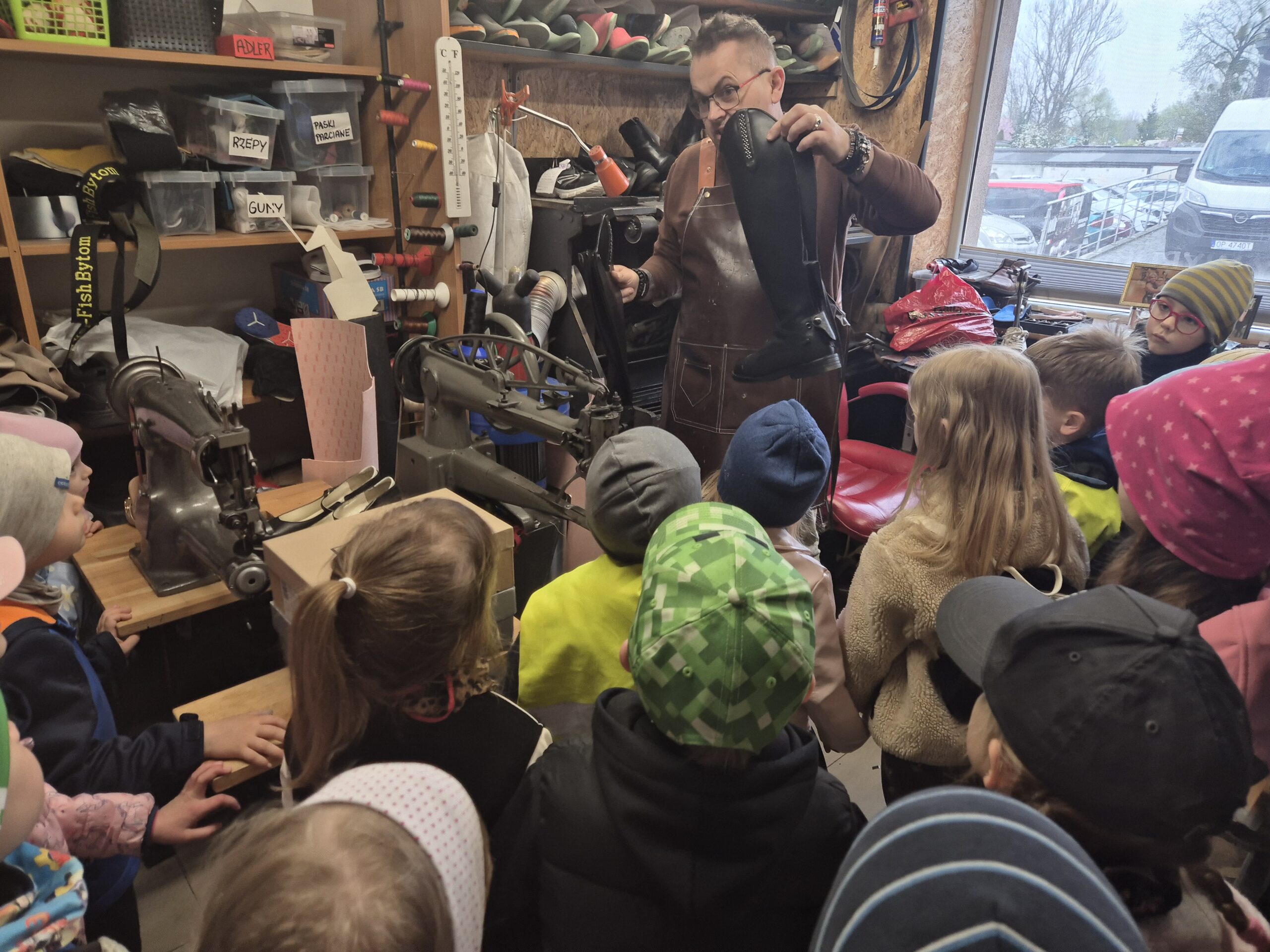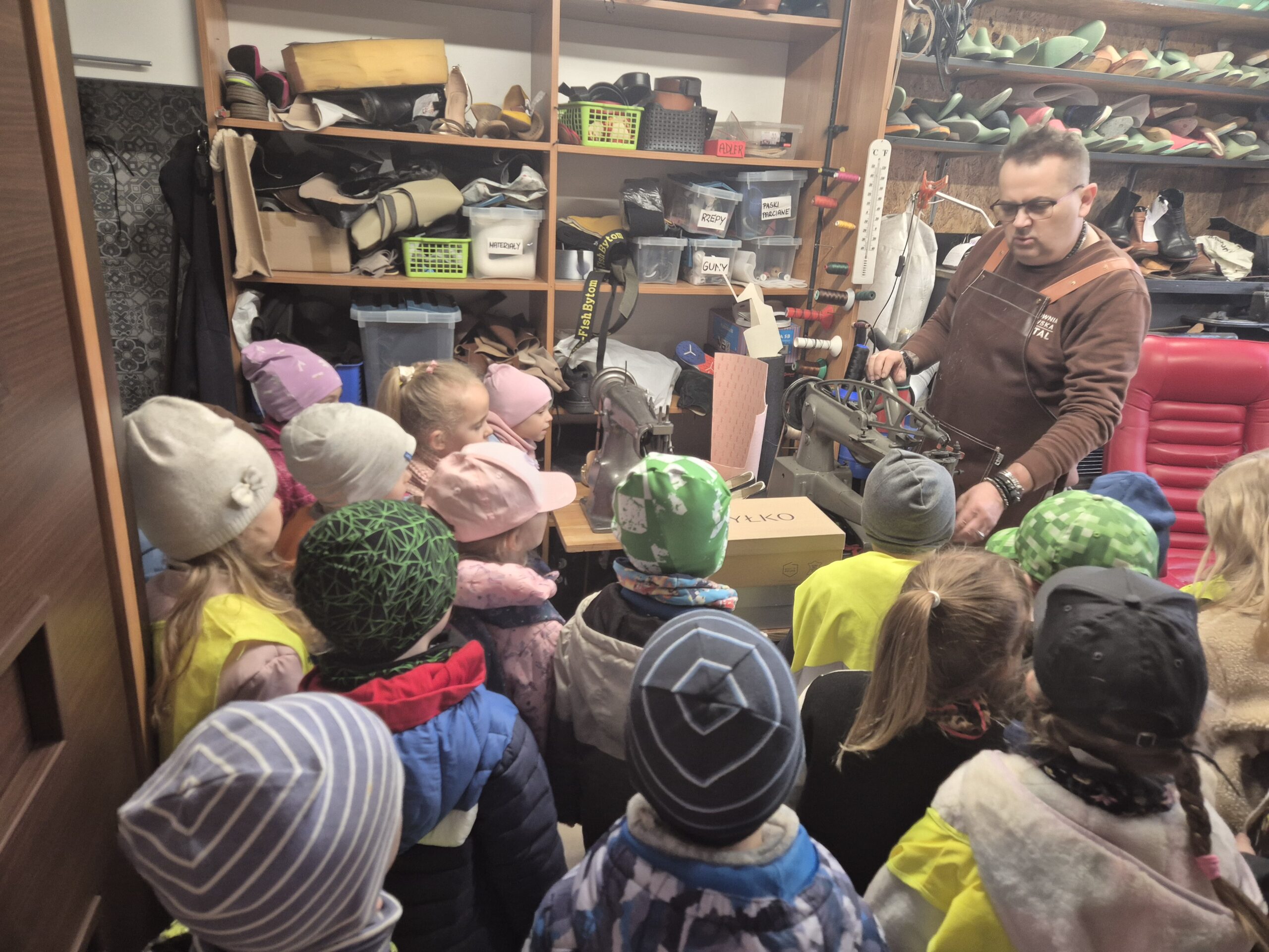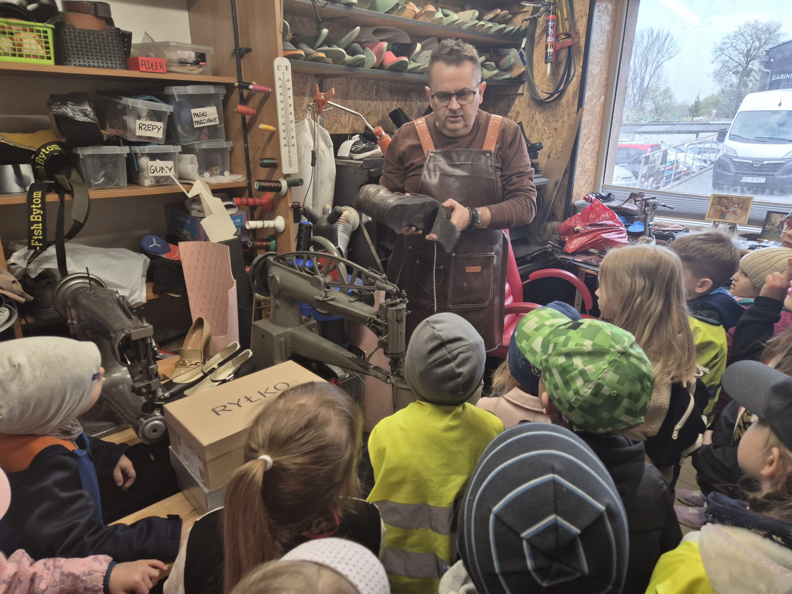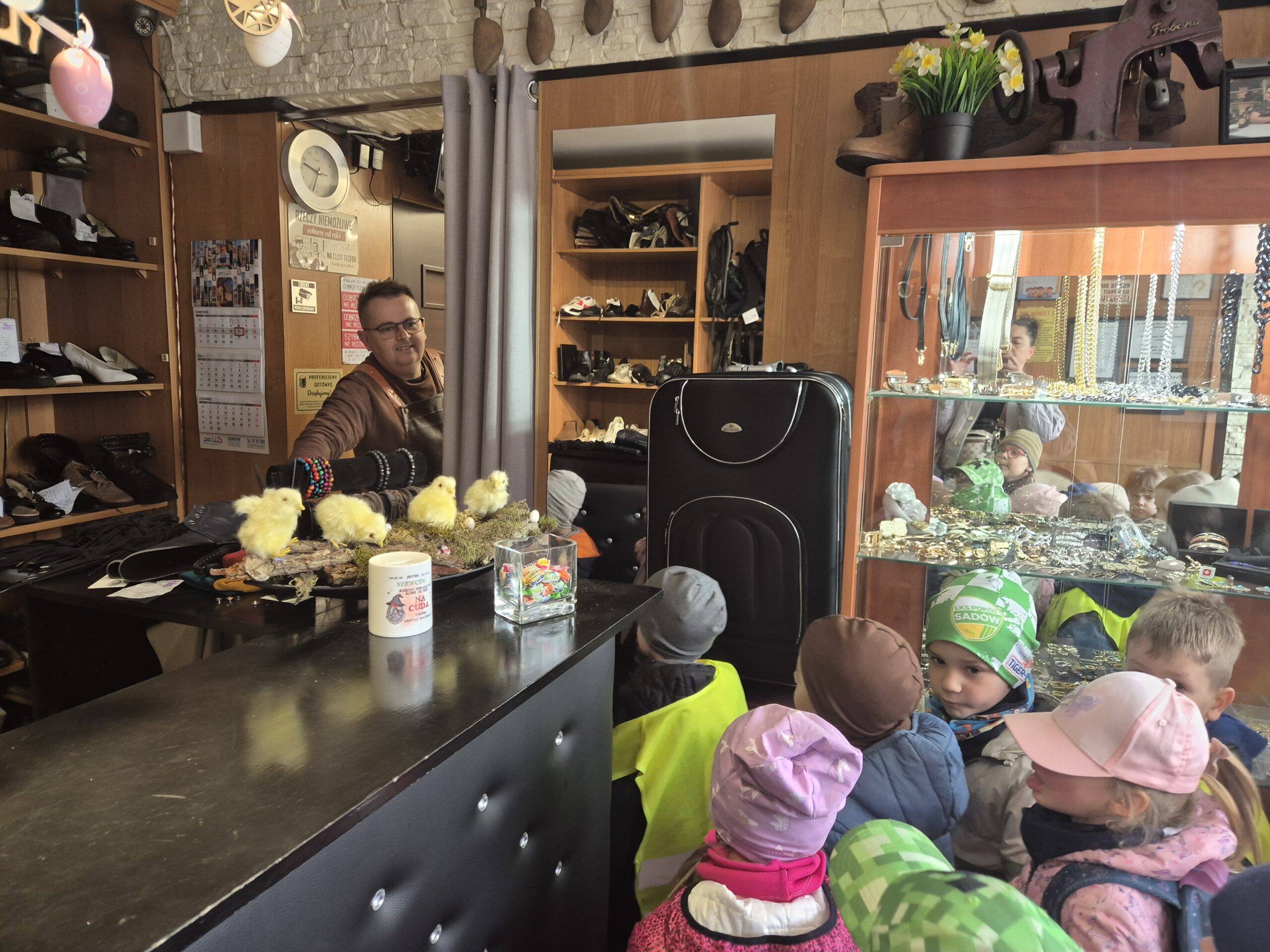 W piątek grupa „Malinek” w ramach preorientacji zawodowej wybrała się z wizytą do pracowni szewskiej Pana Krzysztofa, aby poznać zawód szewca. Pan Krzysztof bardzo serdecznie ugościł naszych przedszkolaków i w ciekawy sposób opowiedział o swojej pracy, pokazując narzędzia oraz etapy naprawy obuwia. Po wizycie u szewca udaliśmy się do pobliskiej kawiarni Cafe Brejk, gdzie na dzieci czekały pyszne gofry i lody, które sprawiły wszystkim wiele radości. W drodze powrotnej zwiedziliśmy lubliniecki rynek, na którym podziwialiśmy pięknie kwitnące tulipany. To był bardzo udany i pełen wrażeń dzień!