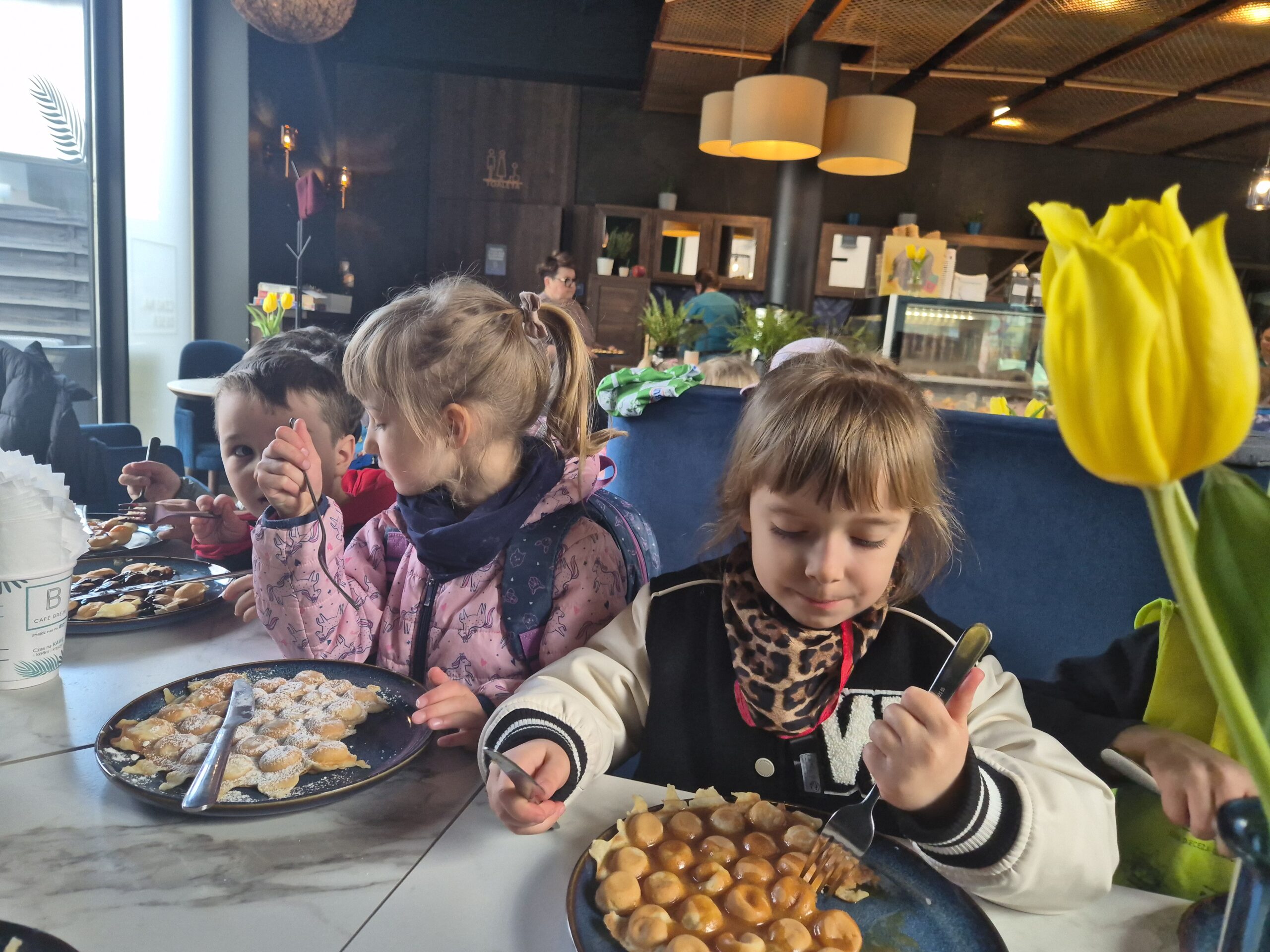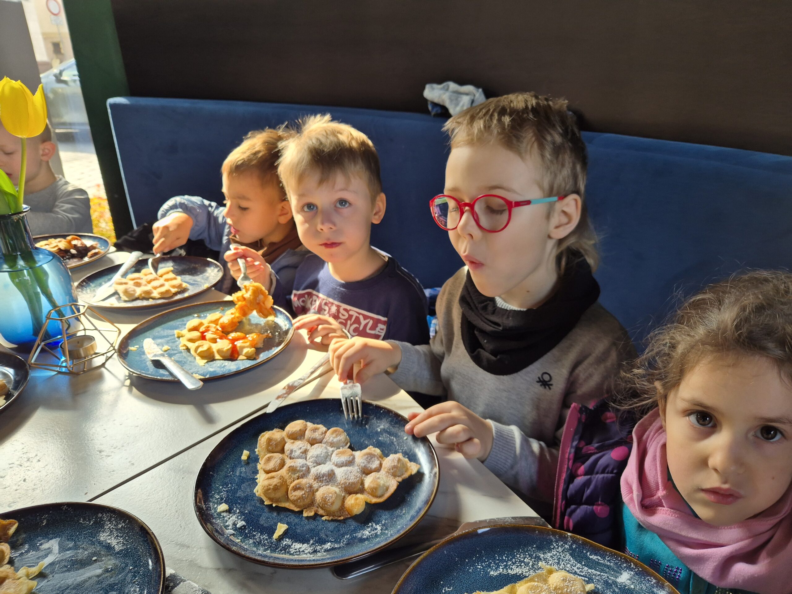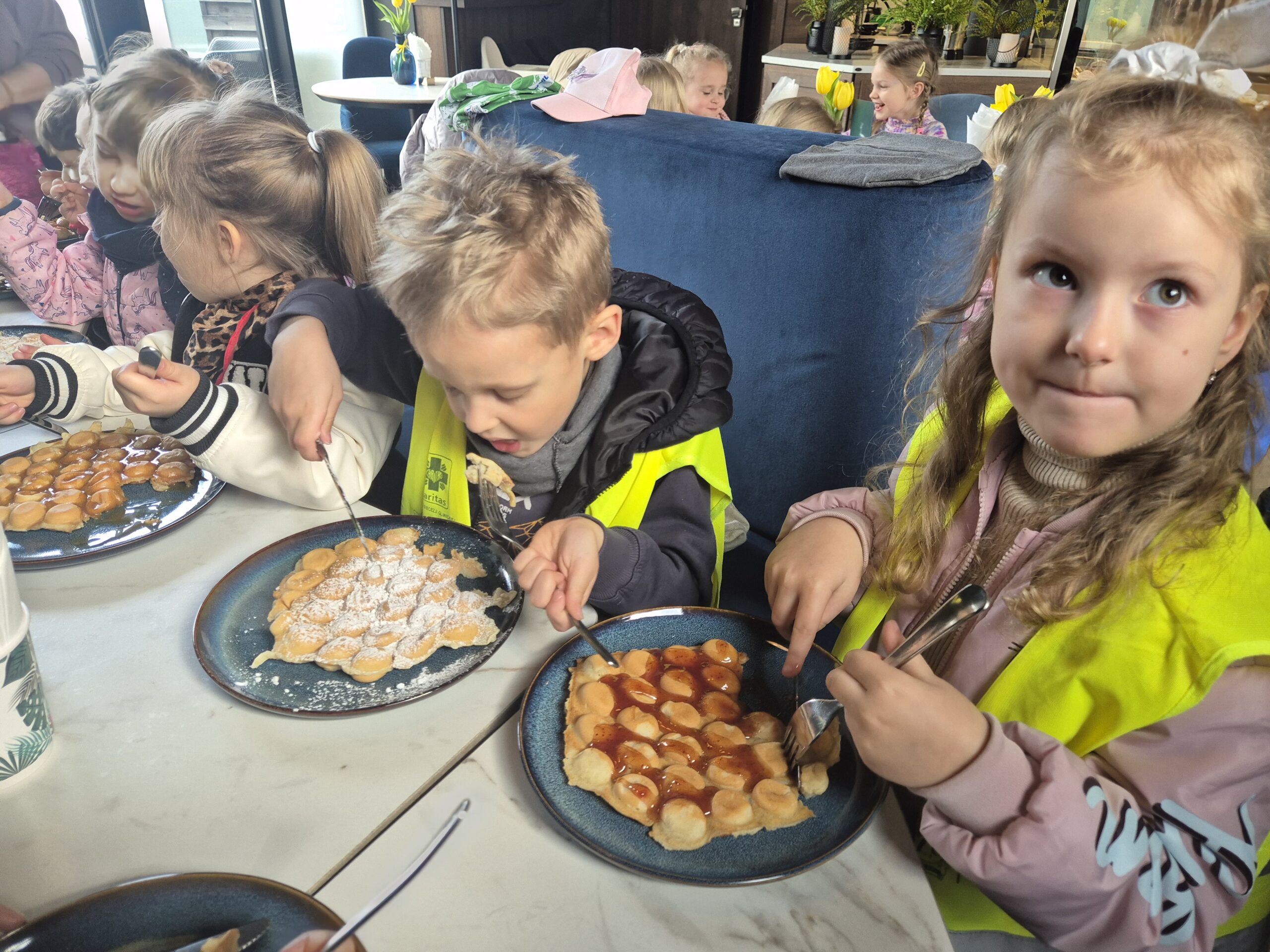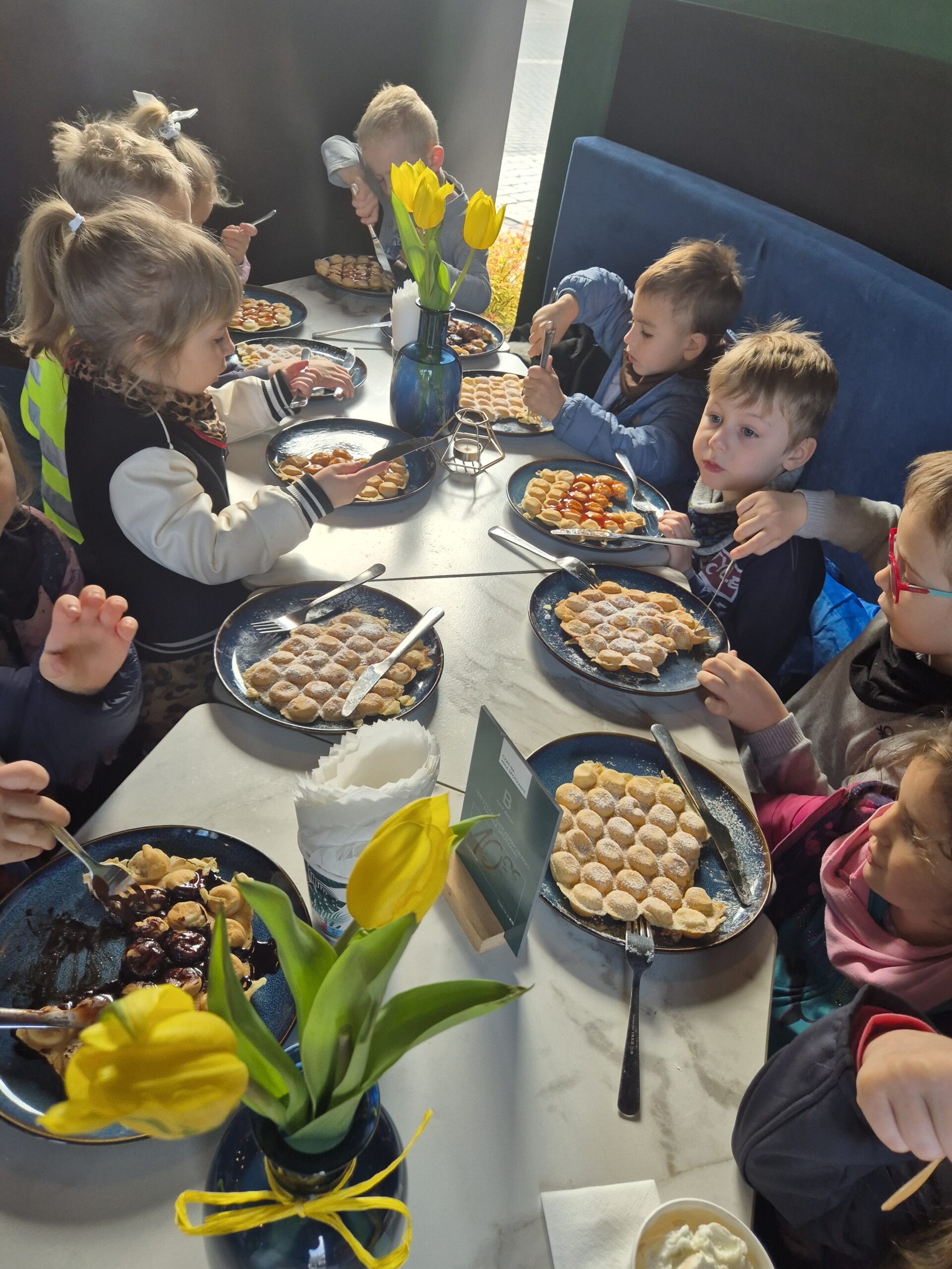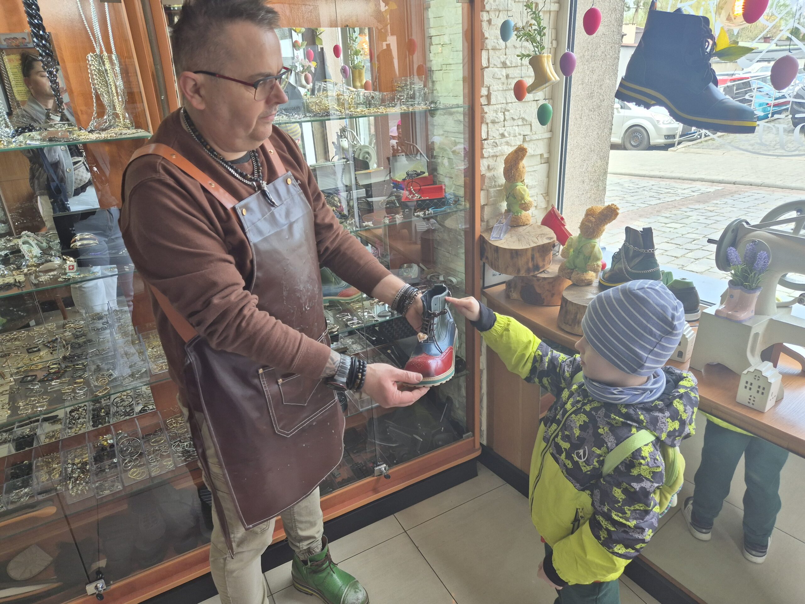W piątek grupa „Malinek” w ramach preorientacji zawodowej wybrała się z wizytą do pracowni szewskiej Pana Krzysztofa, aby poznać zawód szewca. Pan Krzysztof bardzo serdecznie ugościł naszych przedszkolaków i w ciekawy sposób opowiedział o swojej pracy, pokazując narzędzia oraz etapy naprawy obuwia. Po wizycie u szewca udaliśmy się do pobliskiej kawiarni Cafe Brejk, gdzie na dzieci czekały pyszne gofry i lody, które sprawiły wszystkim wiele radości. W drodze powrotnej zwiedziliśmy lubliniecki rynek, na którym podziwialiśmy pięknie kwitnące tulipany. To był bardzo udany i pełen wrażeń dzień!